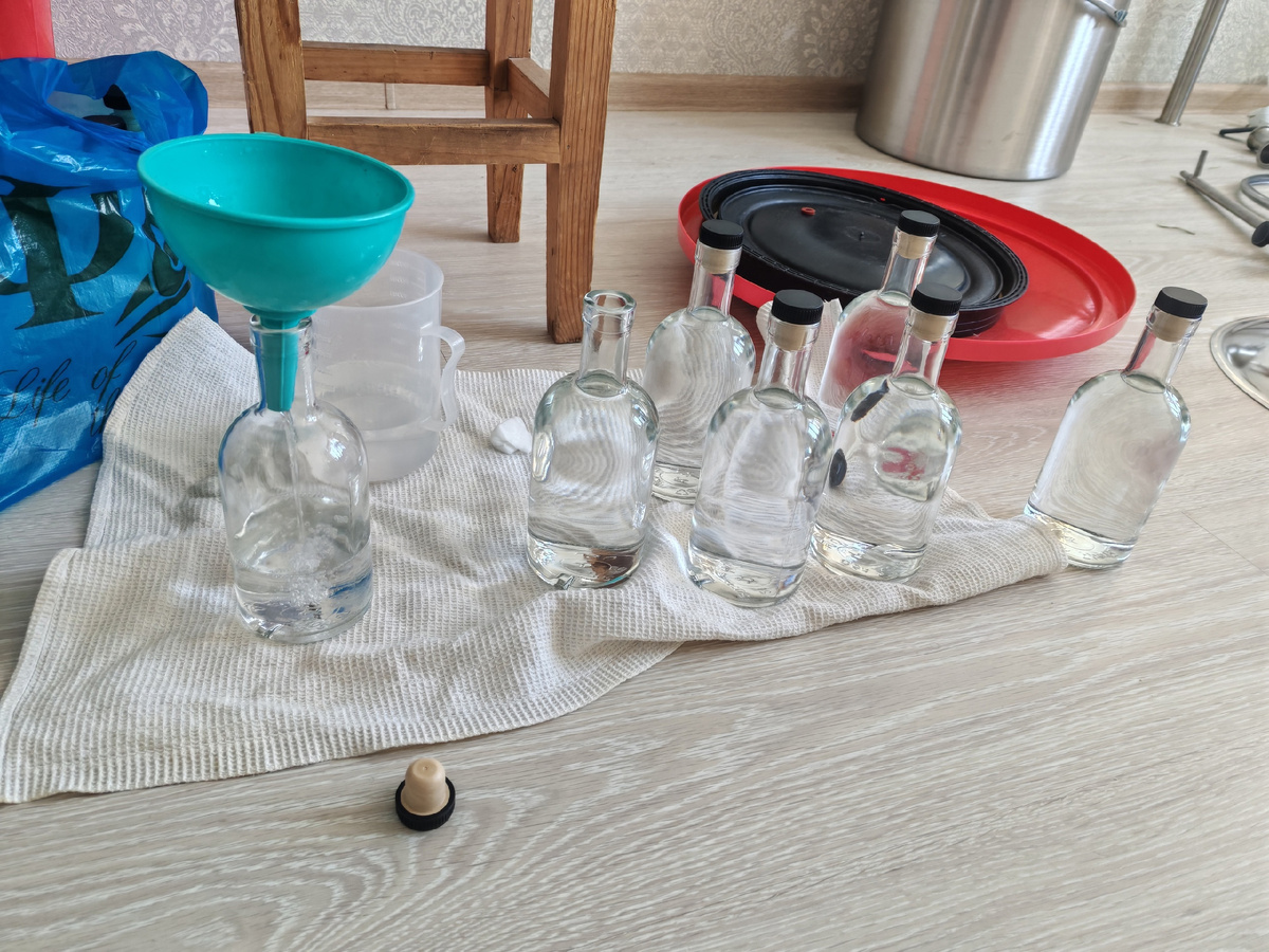 На выходе получите несколько литров чистого спирта, который нужно грамотно разбавить. Об этом ниже.
