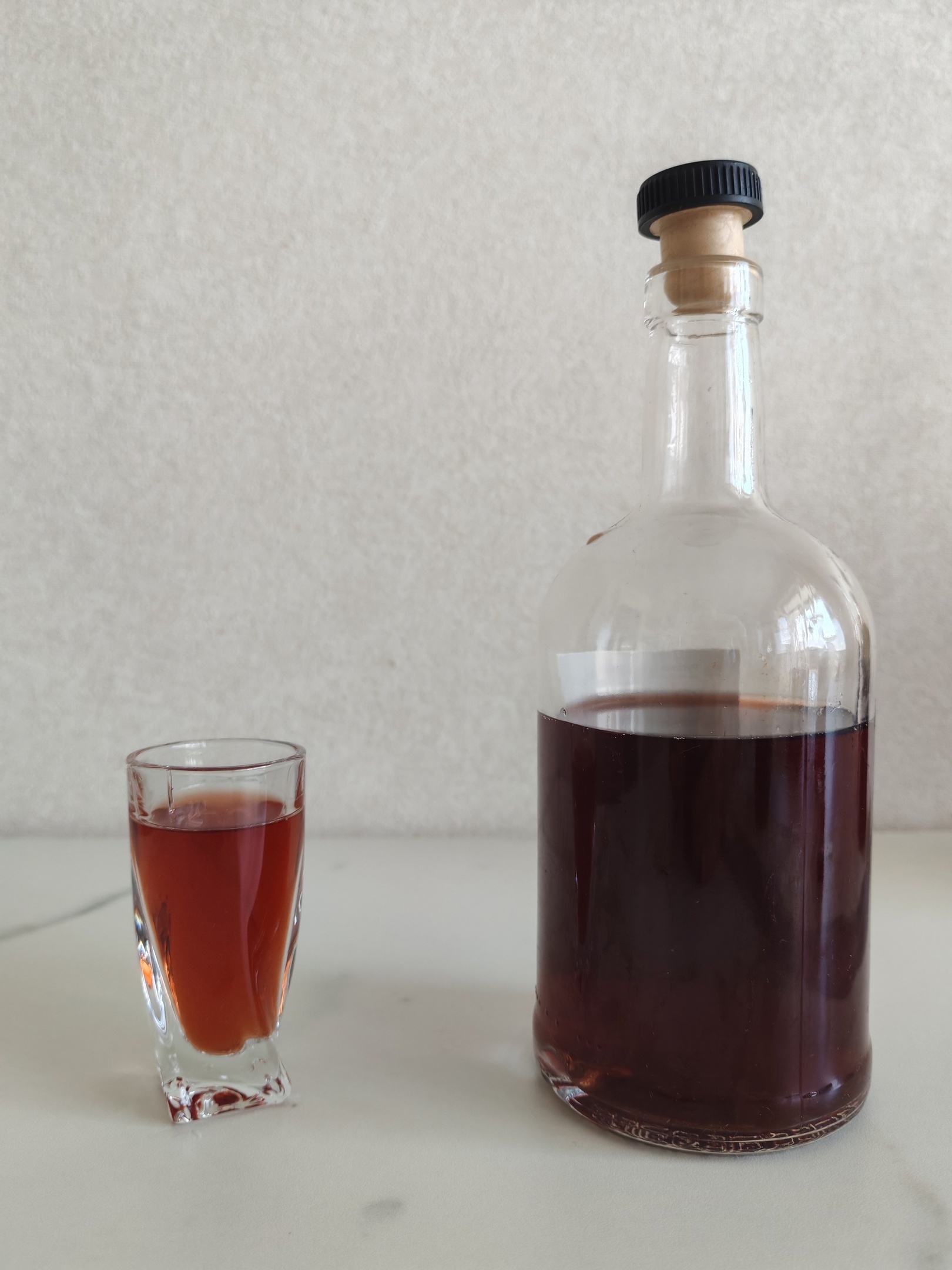 Срок настаивания — 6 месяцев под обычной крышкой в темном месте. Мы оставляли на даче, она там и мерзла в январе, и грелась в мае. Результат получился просто шикарный.