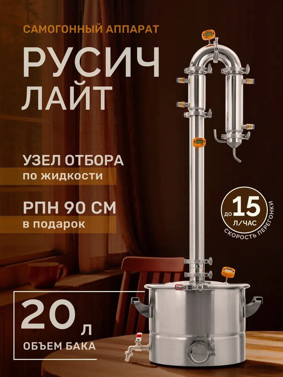 Самогонный аппарат колонного типа с дефлегматором. Более дорогое, современное и эффективное оборудования для самогона. Можно добиться крепости до 96,6% БЕЗ запаха и вкуса. Стоимость от 15 тысяч рублей и выше.